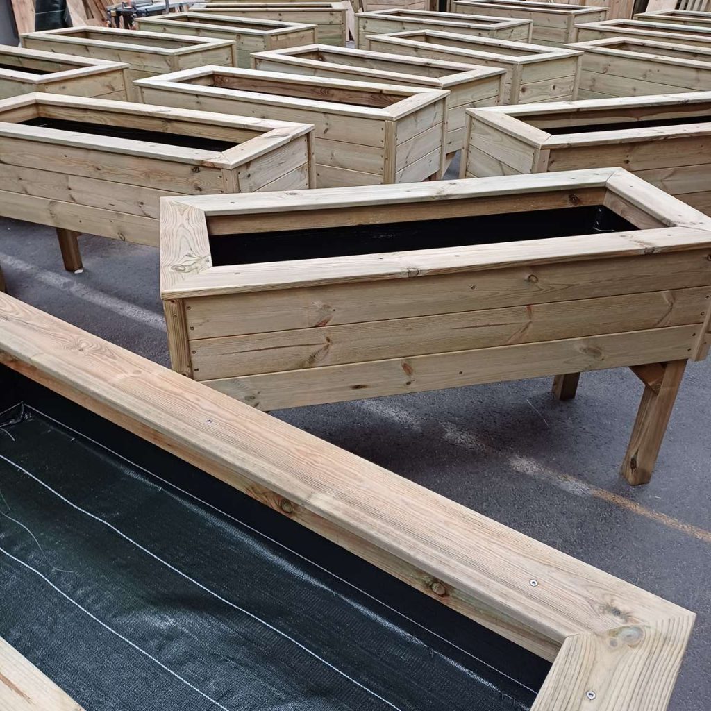 Pour donner une double fonction à votre installation, utilisez une jardinière sur pied en bois plus basse comme banquette végétalisée. Vous obtenez ainsi une jardinière avec une double utilité et l’utiliser soit pour planter des légumes ou des plantes, ou vous pouvez ajouter une banquette et la transformer en assise. Vous ajouterez ainsi du confort à votre extérieur.