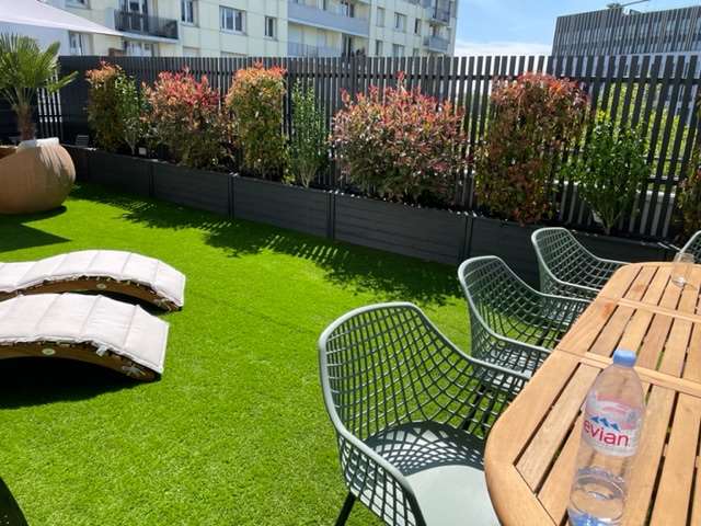 Pour transformer une simple terrasse en véritable espace détente, installez une grande jardinière sur pied à proximité de vos fauteuils ou canapés extérieurs. Par exemple la jardinière?sur?pied en?bois?180×60×40?cm de Jardiflo fait parfaitement le job : elle délimite subtilement l’espace tout en accueillant des plantes retombantes ou des fougères. Ce coin salon terrasse avec jardinière sur pied est très recherché par les hôteliers et les personnes qui possèdent un loft.